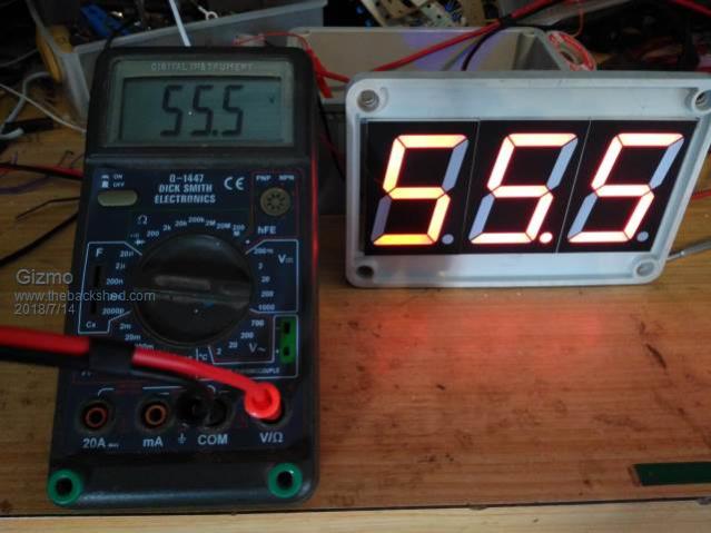 I wanted a big volt meter I could read from a distance. My solar charge controller ( I'm off grid ) has a battery volts display, but its usually blanked, so I need to press a button to see the battery voltage, and needed to be standing in front of the controller to see the reading. All this involves walking across the shed from the doorway to the far wall, an exhausting 9 meter hike. I thought to myself, wouldn't it be nice to see the battery voltage from the shed doorway.