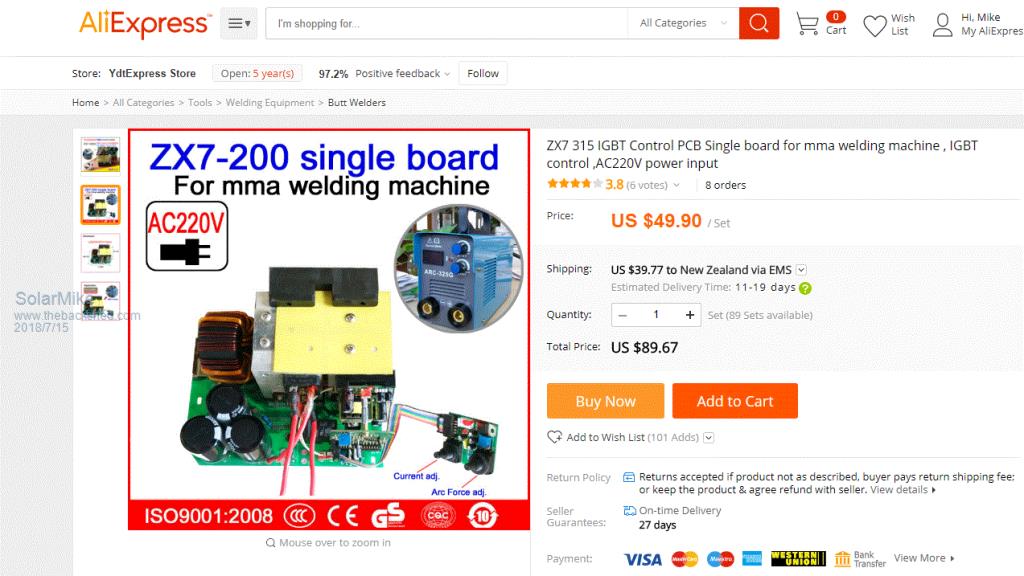 For about the same price here in Australia you can buy the whole welder on EBay as per the links above. They are quite light apart from the PCB there is not much else to them. The toroid on the right in the photo above needs one extra turn, the factory winding is Aluminium, it is not hard to replace with copper.