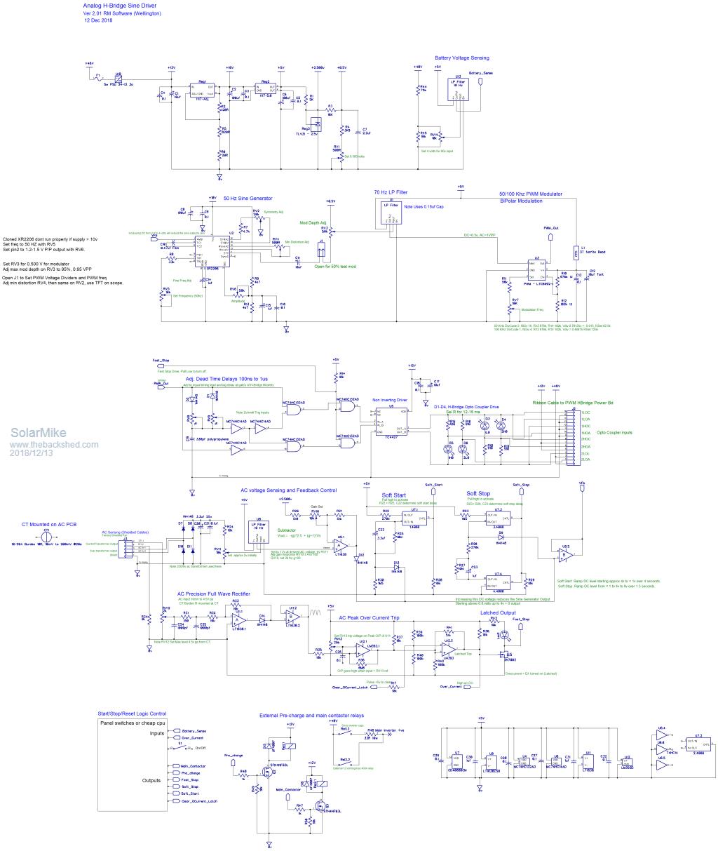 Sine output is feed into a precision modulator chip to produce infinitely variable sine based PWM, this can be used for Bi-Polar drive of the H-Bridge, in my case via opto-couplers. The carrier frequency can be set to any value within limits, I will be using 50 or 100Khz so the chokes are kept reasonably small.