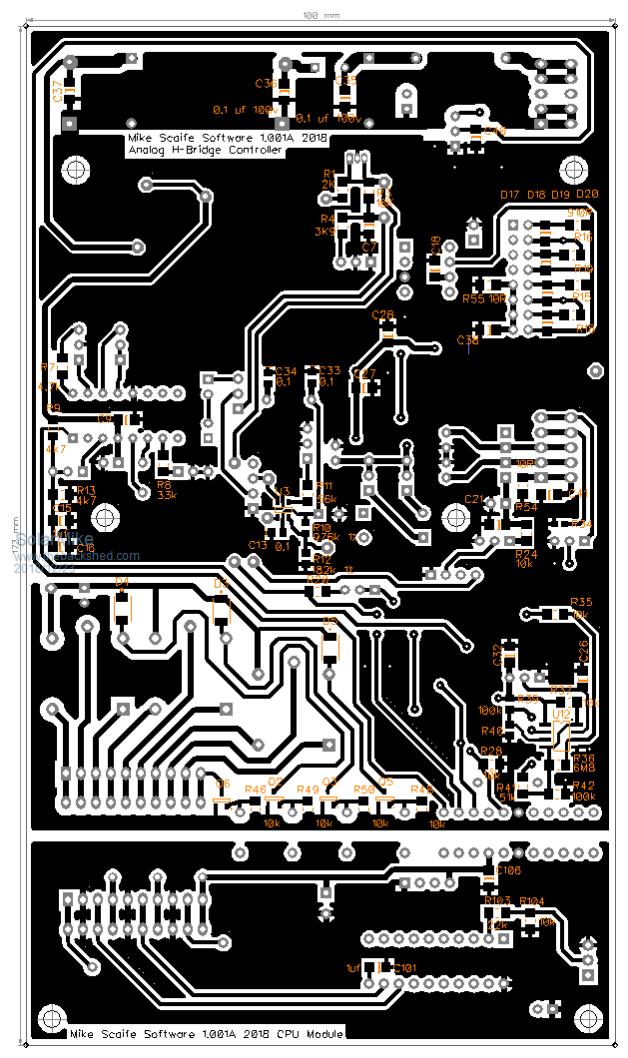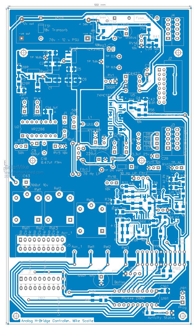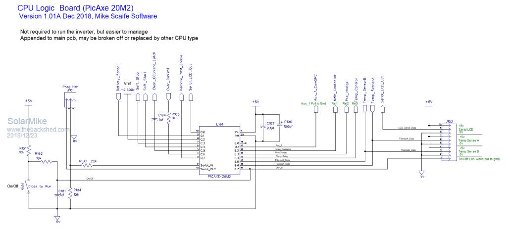 Control relays have been added to control the capacitor bank pre-charge and main contactor relays, with an aux relay + pull to gnd output for controlling a fan or alarm. The CPU add on module is attached to the end of the main PCB and can be cut off or easily exchanged for another CPU type. I have heaps of these picaxes lying around, so intend to use them up.