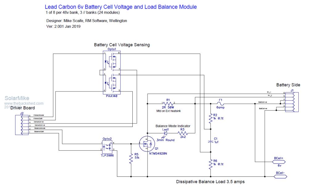 Yes I did look at those series of chips, probably several years ago, they seemed too complicated to me back then, also I don't think they handle cell voltages above 6v so wouldn't work in this application. Shame the SBMS only does 12\24 volts, otherwise I may have ordered one on the Kick-Starter project. Fully aware of the pitfalls of balancers blowing up and taking the pack and perhaps the house with it, nothing good engineering and always have a fallback to plan B cannot fix. Don't know of any LC forums, must be some out there by now, all storage batteries are extremely overpriced and expensive here in NZ, the lead carbons were same cost as normal sealed gel batteries, don't know why more people are not using them. Cheers Mike |