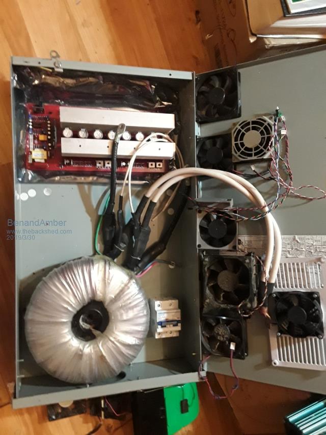 Try and mount that power board so the heatsink is vertical, that way the natural rise of heat will assist you. Fit the fan close below. Be aware that the air will take the path of lowest resistance, you may need some kind of a shrowd to direct air where you want it. No point it blowing all over the place, it needs to go through the fins to cool them and the caps.Edited by renewableMark 2019-03-31