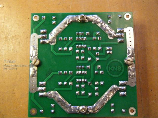 This is a tiny version, just 4 x HY4008's on a common heat sink. The two PCB's are the cheap 100 x 100mm size, 1oz boards.