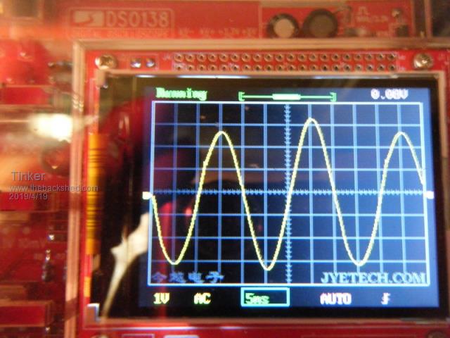 I took the pictures on the cheap little digital scopes as on these the full trace gets captured by my camera. There is an identical trace shown on the dual channel analog CRO but very hard too photograph with hand held camera.