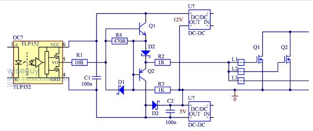 I have never used -ve gate voltages on mosfets so cannot really comment whether doing so would improve matters with these dv/dt glitches. Always seems suggested when using IGBT's. Some publications suggest adding a small capacitor between the gate and source to absorb the glitch pulse caused by induction through the mosfets internal miller capacitance, I don't like this method as extra drive power is required to turn it on and off, perhaps ok to use with low charge input versions. If the output impedance of the mosfet driver is very low, and the driver is a cm or so away from the device, then the gate circuit is generally sufficiently damped and less susceptible to any miller induced turn on. So use 1 driver chip per mosfet and split the damping resistor to the gate to a low value 1 to 3r for the on circuit and 0r for the off part. Some driver chips like the TC4452 have a split output that allows this scheme; similar effect (not as good) achieved by use of a schottky diode across the gate resistor. Costs start to add up if a 1:1 driver\mosfet is used, depends on the situation and the type of mosfets used, a 1:4 ratio would probably work ok with the mosfets people here are mostly using, or use the low cost ZXGD3005 series in a 1:1 ratio (small and fiddly however) when using the higher input capacitance IR mosfets. Certainly using anti-cross conduction transistors is a good improvement and going to an all quadrant isolated drive scheme using either opto-isolated or digital isolator chip would be a vastly better improvement for preventing ground induced spikes and reliability in general. Cheers Mike |