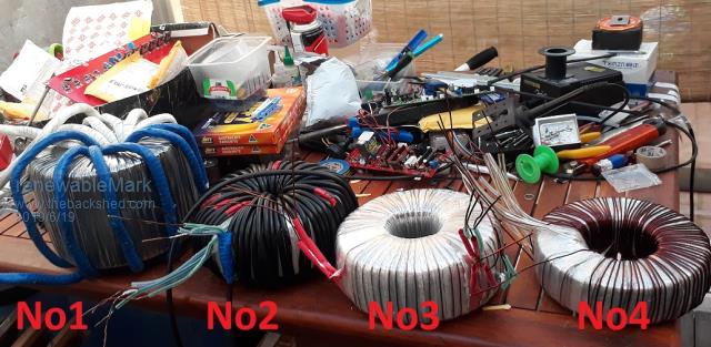 ![]() Almost finished the torroids. No1 (225v)is actually one which was all ready to go into another Madinverter. That just needs the primary wire taken off and re done with 35mm2 No 1 needs 128 turns of 4 secondaries of 2mm2 and 25 turns of 1 35mm2 primary. This is double stacked 3kw cores. I did however manage to get a hold of some more 3kw toroids, so that one may still get put aside for another Madinverter and wind another identical one for the Warp unit (but different primary winding). No2 (75v) is a 2kw core. 104 turns of 4 secondaries of 2mm2 61 turns of 13.5mm2 primary. Klaus, I think you are doing something similar here, be warned it is a tight fit. This is all I had left. ![]() No3 (25v) is another 2kw core. 34 turns of 4 secondaries 2mm2. 60 turns of 2 primaries 2mm2 No4 (8.33v) Almost finished doing the primary. 1.5 kw core. 17 turns of 4 secondaries 2mm2 90 turns of 1 primary 2mm2. Now onto the boards. Cheers Caveman Mark Off grid eastern Melb |