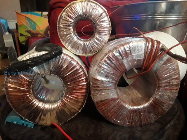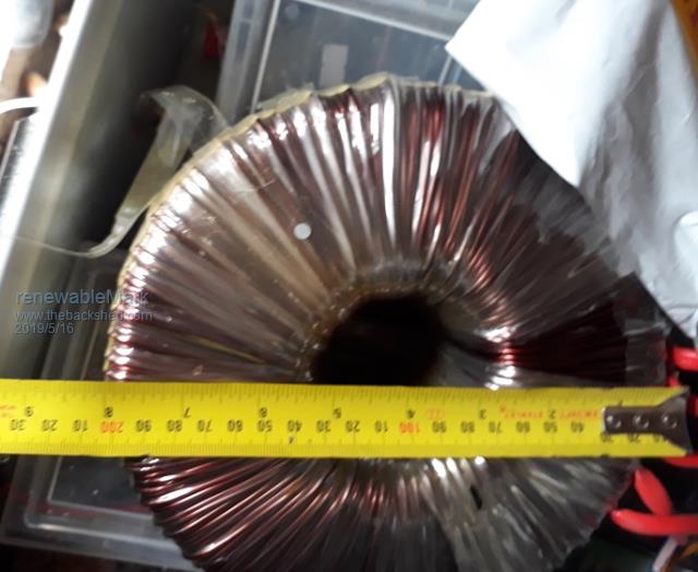 Ben, I have here a 1KVA rated toroid which looks of a similar size than the one you pictured. I will be using it for #4 (the smallest) toroid, simply because the hole is too small to feed a lot of turns through, as required with the other, bigger voltage, toroids. For your #1 (biggest) toroid look for something that has a 3.5" hole left when all the wires are removed if you want something capable of a few KW. I would suggest you put the building a warpinverter plan on the shelf for a while and cut your teeth with building a decent size single toroid inverter from *scratch*, that means no pre assembled Chinese kit boards. By the time you got that running with no blow ups you learned enough about toroids and how to rate them to proceed to a warp inverter - which is a much more complex beast with its 4 toroids to calculate windings for. Klaus |