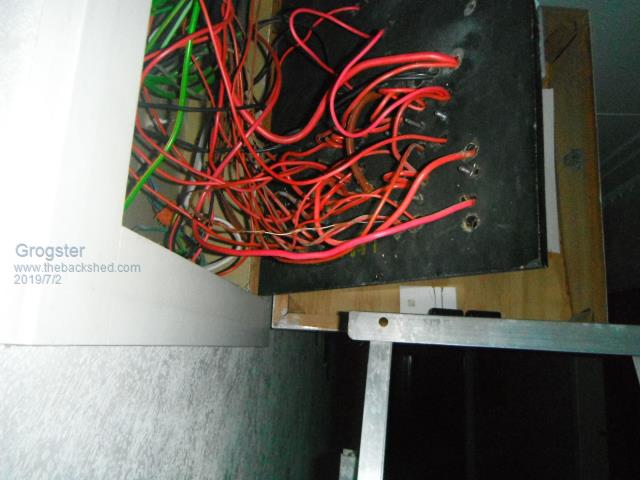 Here is another image from the back of the main panel: ![]() Note the red phase wire about the middle of the image, where all the insulation has broken off. This is the outgoing phase to the lighting circuit. Not good. ![]() I suppose that TECHNICALLY, you would have to open this main panel to be exposed to this, but still..... Grogster is NOT happy. I will correct this. In this installation, the incoming phase is on the top of the fuse carrier, and the outgoing(load) is on the lower wires. Has been like this since I was a nipper. So that means that the bare wire phase as shown in this photo is the outgoing(load) side of the fuse, and the fuses are removed at present, so it is...safe enough for now... I will be replacing this feed and probably most of the others. Smoke makes things work. When the smoke gets out, it stops! |