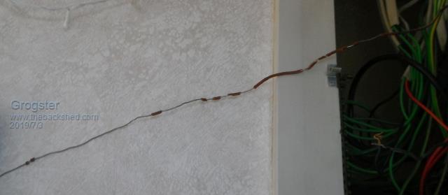 I had something very similar. On the north side is a sun room with an almost flat galvanised iron roof. The roof iron needed replacing, but when I ripped it all up, underneath was the wiring to the light. That was the same old TRS hard rubber wire, but through countless dozens of summers, right underneath that iron roof under the blazing sun, all the rubber had disintegrated into dust and vanished. Except directly beneath each rafter where a couple of inches remained. Absolutely bare parallel wires about 6mm apart. Yikes !!! Cheers, Tony. |