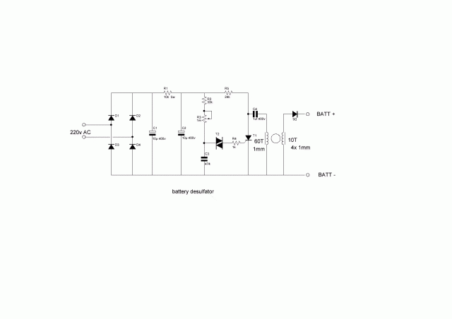 I have been playing around with battery desulfators for a while now with limited successes but i noticed that when you use AC power in series with a capacitor and diode it begins to work then reaches a sticking point, where the battery voltage stops climbing back up. But if you lift one of the terminals and cause it to spark a few times all of a sudden the voltage climbs up again so i came up with the idea of using a strobe circuit where a capacitor discharges into a transformer from high voltage to lower voltage high current into the battery so far looks good i am testing on a battery that had zero volts and is now at 4.6v will keep you posted. |
