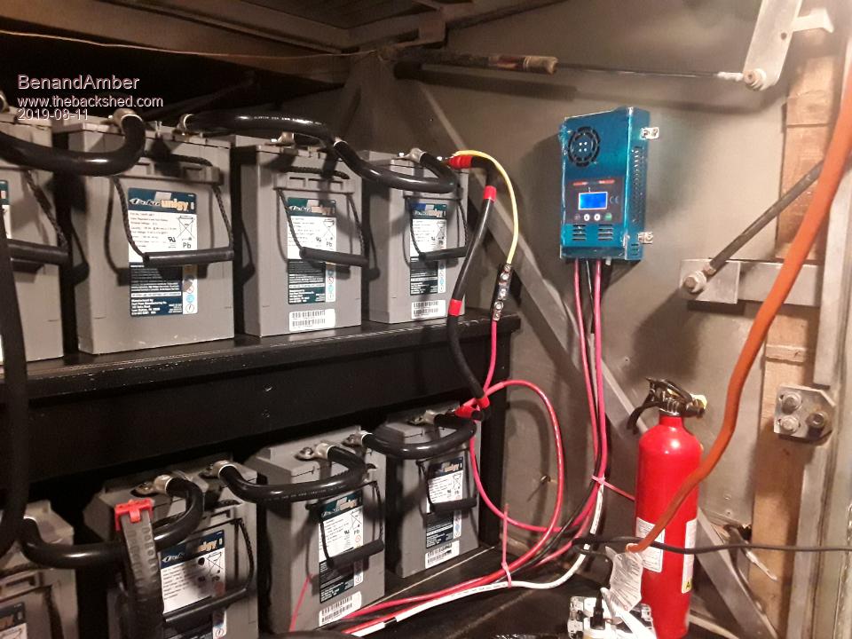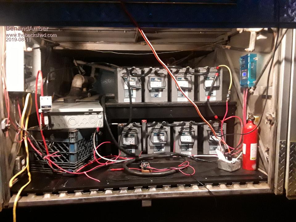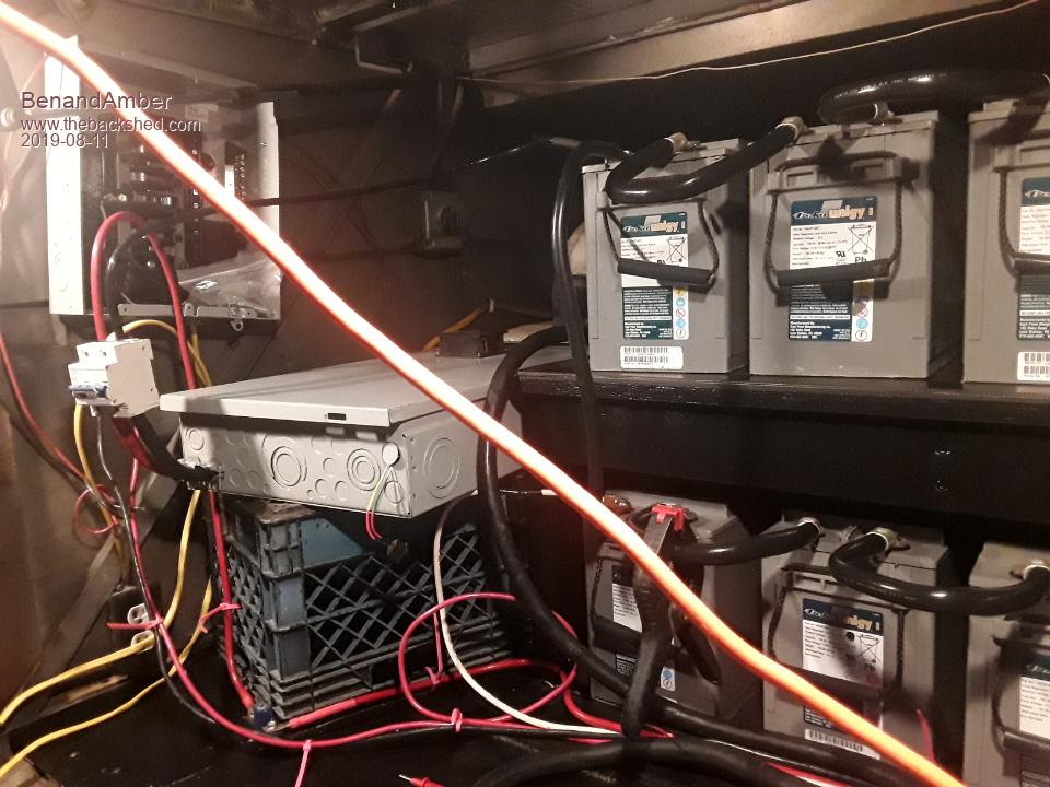 Awesome Mac do you care to do a little Doodle of the circuit you're talkin about And another question is how do you guys get these giant wires in these little lugs of Breakers and such ![]() I have giant wire that's going to be going to the inverter when I hook it up permanently right now it just has a AWG 2 wire That is a hundred amp breaker that's hooked up to it I hate that you can't hardly get big wire into it they make the lugs so small It also has a hundred amp fuse you may be able to see it on the bottom right-hand side of the crate the inverter is setting on I have AWG 6 wire going to the charge controllers it also has a fuse in between it and the battery Bank The breaker box at the top left is for the input of the solar panels each breaker will be hooked up to 3 solar panels in series only have one for now ![]() that large black wire going over the inverter has one of those giant RV 220 plugs on it it plugs right into the side of my inverter that wire will be going to the bus breaker box instead of those two receptacles when I'm all done I can unplug the inverter and plug into Shore power if I ever need to no way of messing that up both cannot be plugged in same time because they use the same plug going to the breaker box The Big sure power wire is like a giant extension cord female on one side and male on the other ![]() I'm still debating whether to have the charge controllers and the inverter up in the bus or keep them down in the bottom I think I'm for sure going to put the solar panel breaker box up in the bus alongside of the regular breaker box All comments and ideals are very welcome Edited 2019-08-11 12:10 by BenandAmber be warned i am good parrot but Dumber than a box of rocks |