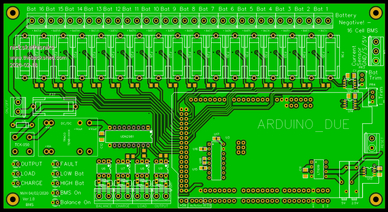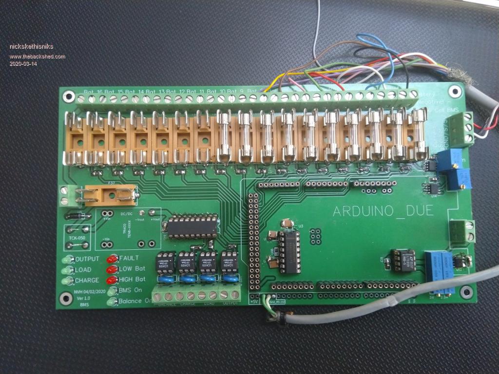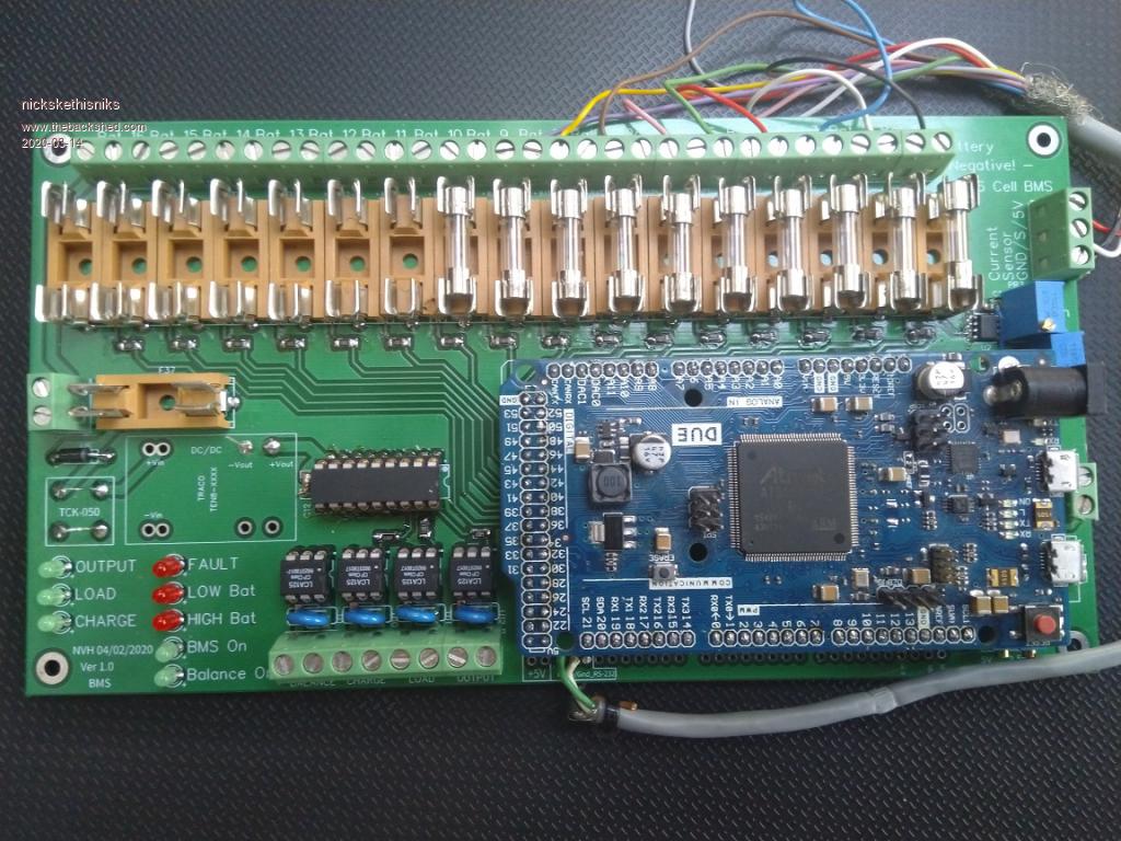 I was lucky to receive the boards of my "brain" board a few weeks ago. Since then I added parts and have tested all functions of the board.(for now I only tested a 8 cells lifepo4 pack) The arduino Mega and Due are both working with the bord, I'll keep using the DUE for it's 12bit inputs.