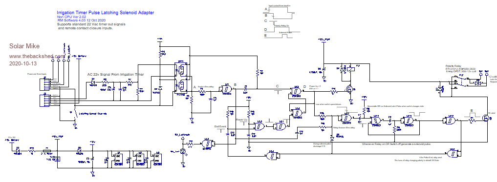 These irrigation timers are expensive, pulse types very and not readily available, thus the rational to make a small interface pcb that can be potted, to allow use of the less expensive AC controllers or multiples of the cheap rail mounted timers with a relay contact running off 12 volts.