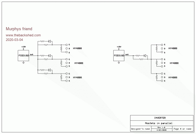 I have a requirement to connect up to 5 HY4008 mosfets in parallel (for an inverter).
