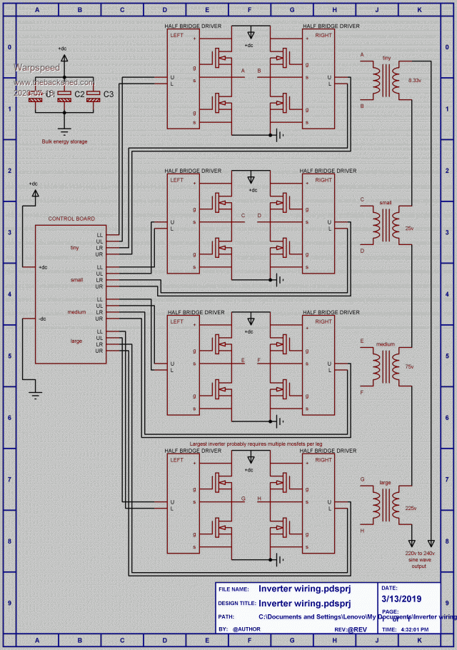 This is something of my own creation, but there are now five Forum members here that have successfully built inverters of this type, and all are in the 5Kw to 7.5Kw range.