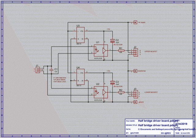 I just realised the schematic does not correspond exactly to the board. The inverse diodes across the gate resistors are no longer required, and the component designators are wrong. But the schematic is correct in concept.