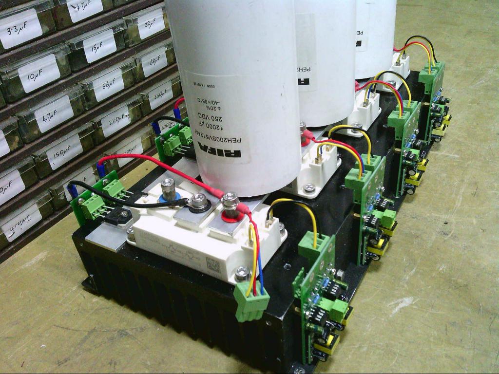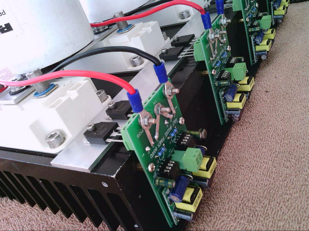 Four more driver boards run the two larger inverters that use 200 amp 1200 volt half bridge IGBT power blocks.