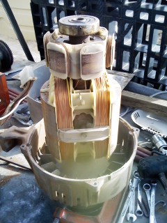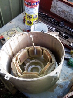 Can't be hard to find the fault. By the look of the blackened stator coil in the top picture it appears to be burned out. Shouldn't be too hard to remove the statorwindings and rewind. Throw in some new bearings for good measure and she'd be as good as new.Edited by Dinges 2008-08-31