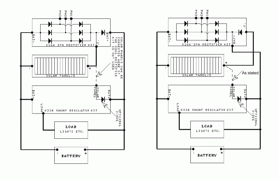G'day Gordon, Yes i think you may be right. The diagram is representative for explanation of layout configuration rather than as schematic. Indeed, perhaps my correction is not of the actual board circuit at all but of a diagram error. Still, good to see a simple readily available shunt regulator for those not wanting or able to build their own. For the first to buy one, Please post a copy of the regulator schematic for online forum assistance and trouble shooting. Thanks. was working fine... til the smoke got out. Cheers Gill _Cairns, FNQ |