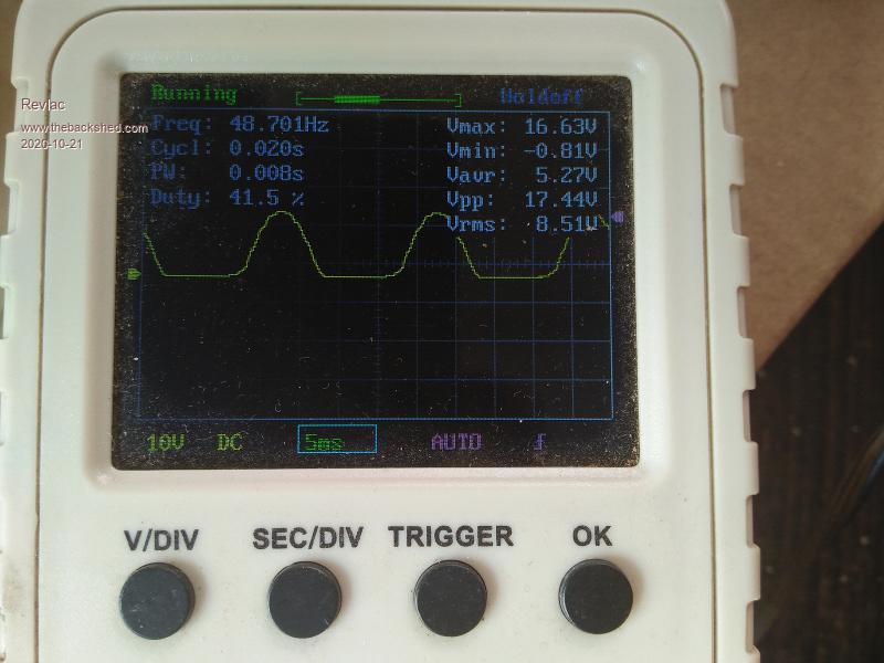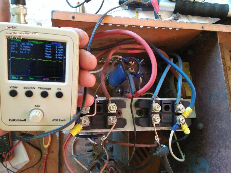 Arlec PS439 After all these years it finally gave up........Ha, the damn thing is older than me, Its had a lot of use over the years and a few repairs, voltage selector switch and so on. Went to use it today to top up a set of 80 lithium 18650's, just to bring them up to about 4v or thereabouts, its been good for this sort of thing because of the select able voltage switch, something a smart charger does not have, or some do and I don't know about it yet. ![]() I found it was not putting out any current when charging, and it had some stink coming out of it. This is the guts of it, The old style (I believe it is a) selenium rectifier. ![]() And a check of the output with the little scope revealed some nasty half wave I was putting into the battery. ![]() The transformer appears to be ok, I should check it properly after the rectifier is removed.... I think its worth the effort to repair it, already have more than enough things that need fixing, But as yet haven't seen anything that I like that would replace this charger. Time to find some rectifiers among the bits and pieces in the shed, busted Alternators etc. ![]() Cheers Aaron Off The Grid |