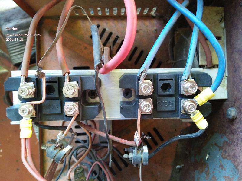 Golly !! Its been a very long time since I saw something with a selenium rectifier in it. Alternator diodes will work, but may be difficult to heat sink and mount. I would be using something like this: https://www.ebay.com.au/itm/MDQ-150A-1600V-Black-Single-Phase-Diode-Bridge-Rectifier-150A-Amp-High-Power/373228150516?hash=item56e6219ef4:g:C90AAOSw3uxfacbY Very easy to just bolt down into the case, because the heatsink is insulated. And it will be totally indestructible. Edited 2020-10-22 06:32 by Warpspeed Cheers, Tony. |