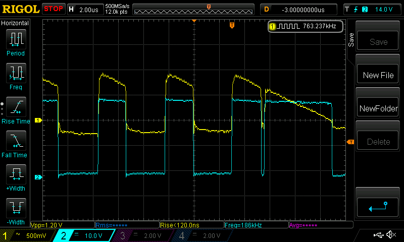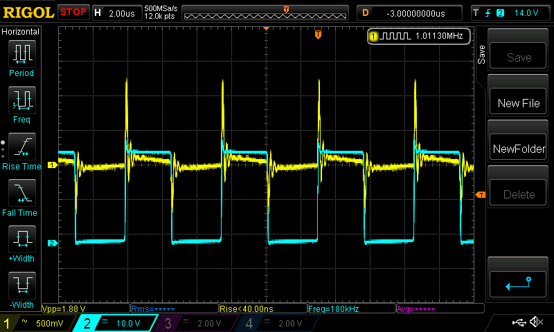 which clearly shows the switching frequency and gives me something to trigger off.