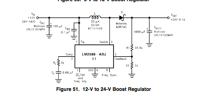 Looking at for instance the LM2588 converter chip, TI's example