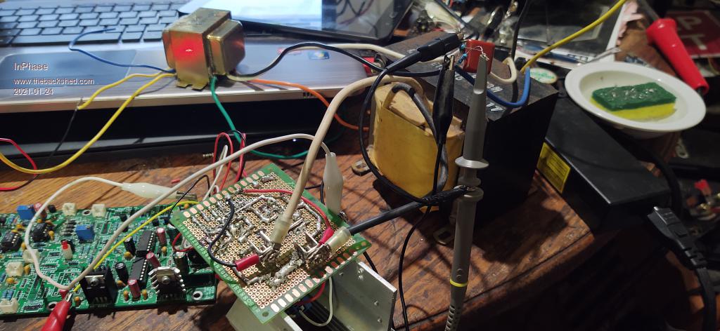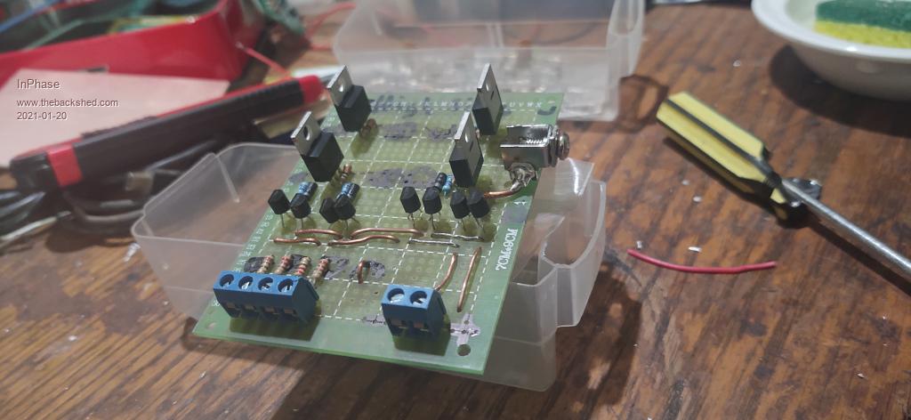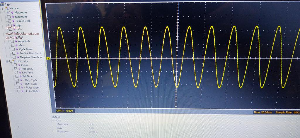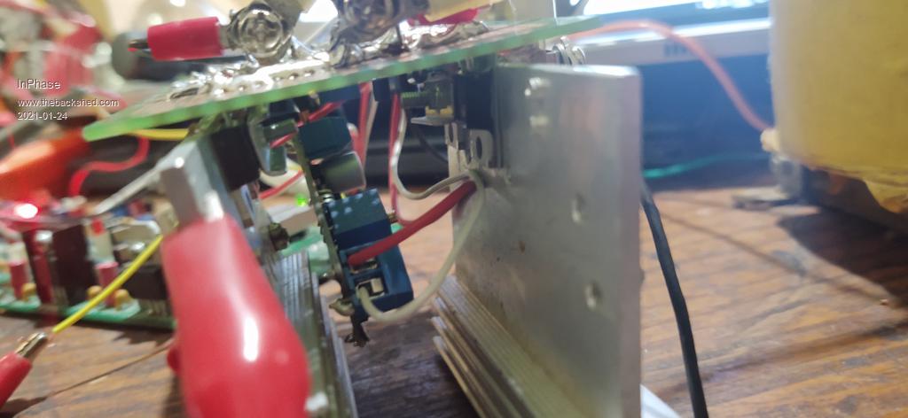 Hey thanks tinyt and Peter! I've just today gotten a Nanoverter into a condition to output power. It is an utter mess, but it works. I only have a 20 volt power supply on the bench, but it performs nicely with the limits of that source. The 60 Hz sine wave is rock solid except when I push the VFB all the way up. I have to back off of max a couple of turns on the pot else a strange ripple choices through the sine wave. But that's OK, because I was just testing the limits. I'll get some better pics when it isn't live and I take it apart. ![]() ![]() |