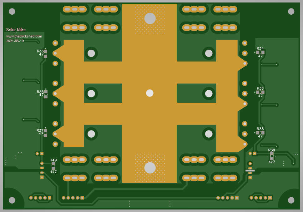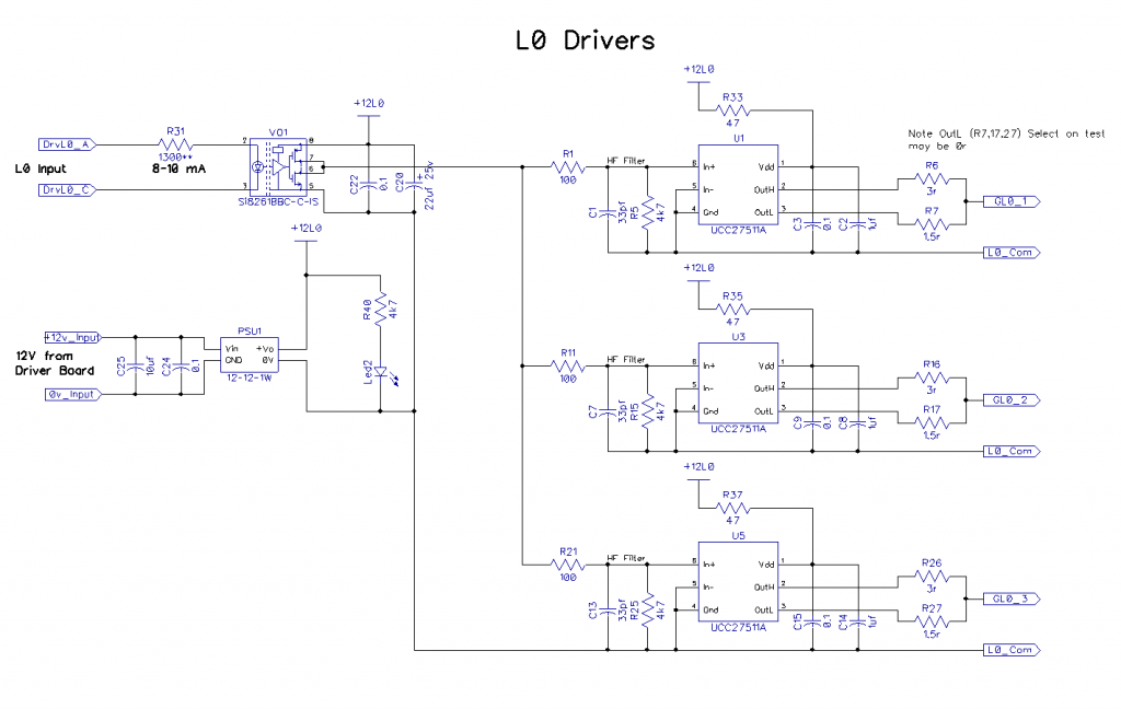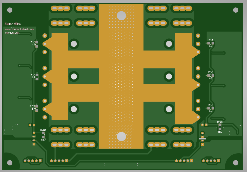 I want to make the H-Bridge power mosfet stages modular; by this I mean splitting up the Bridge into two half bridge pcb's that are linked together. If higher output power is required then another set of boards can be paralleled with the existing, all driven from the same driver.