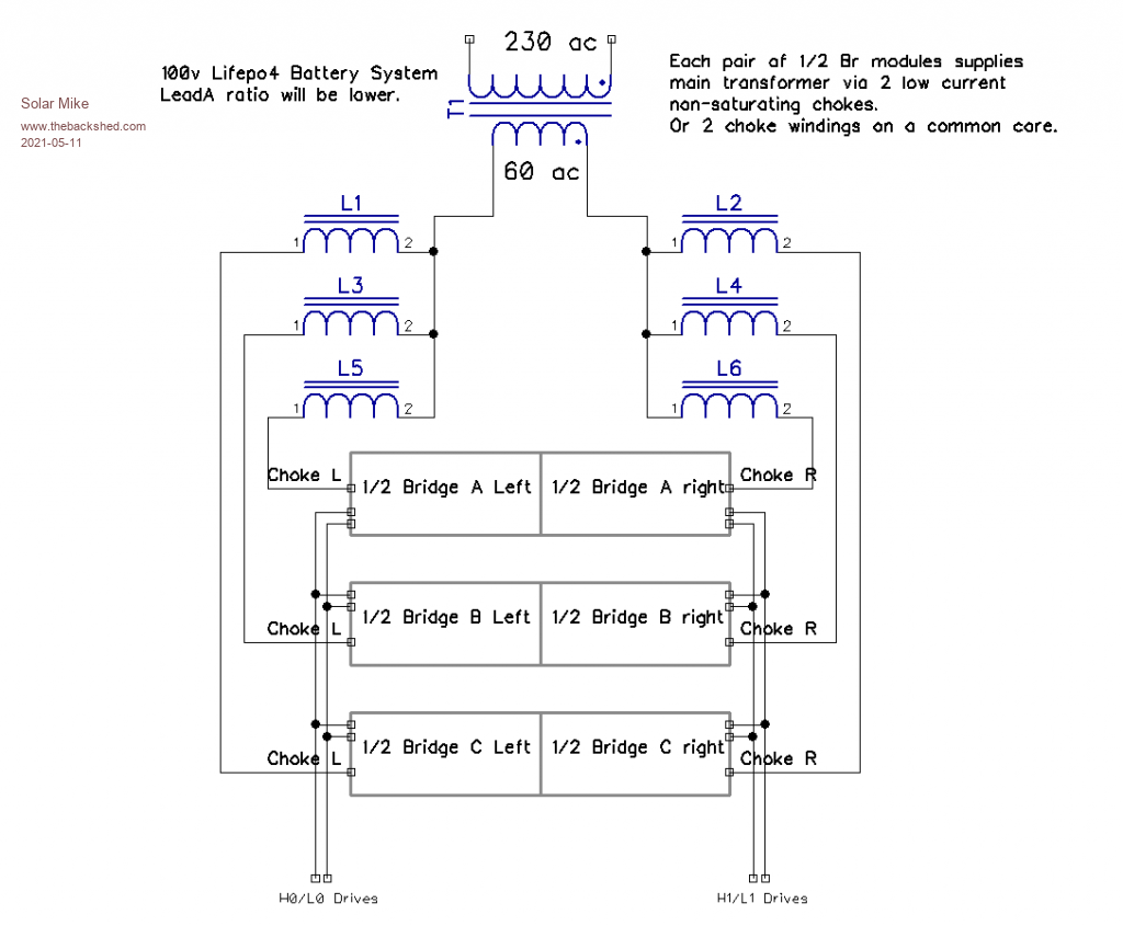 Not sure Warp about the out of phase bit, the SPWM's surely must be in phase if they were all driving a single large toroidal core. Out of phase would work in a buck converter, not here.??