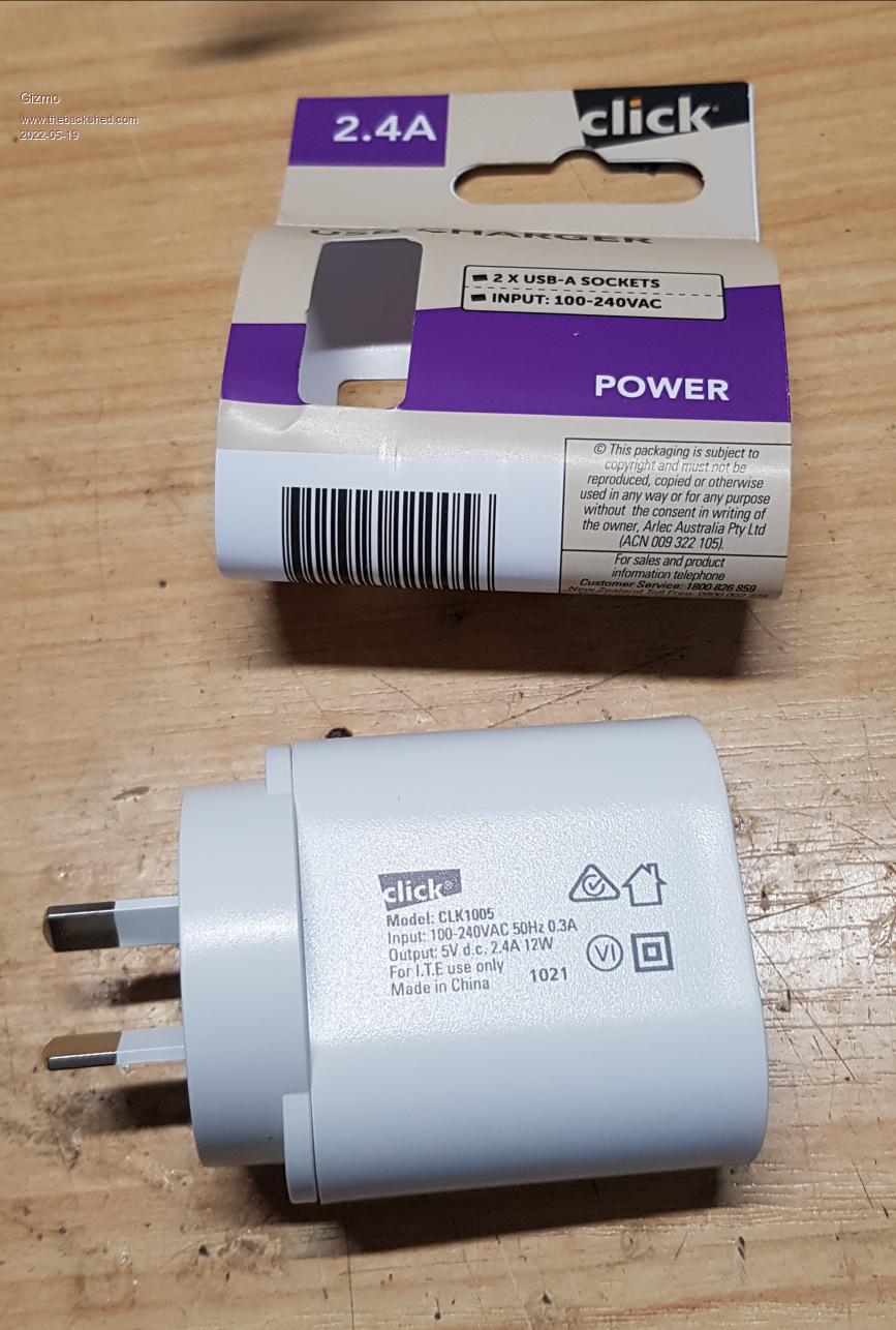 While at my local Bunnings a few weeks ago I picked up a few cheap 1 amp USB power supplies for another project. Once home I discovered one had been squashed, so decided to open it up, it was only $8. Circuit board was OK, so I wondered how low a input voltage it would accept and still provide a stable 5v output.