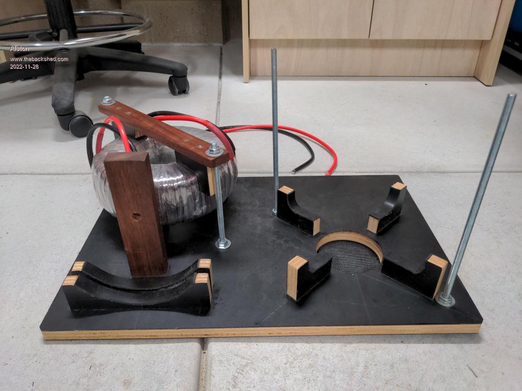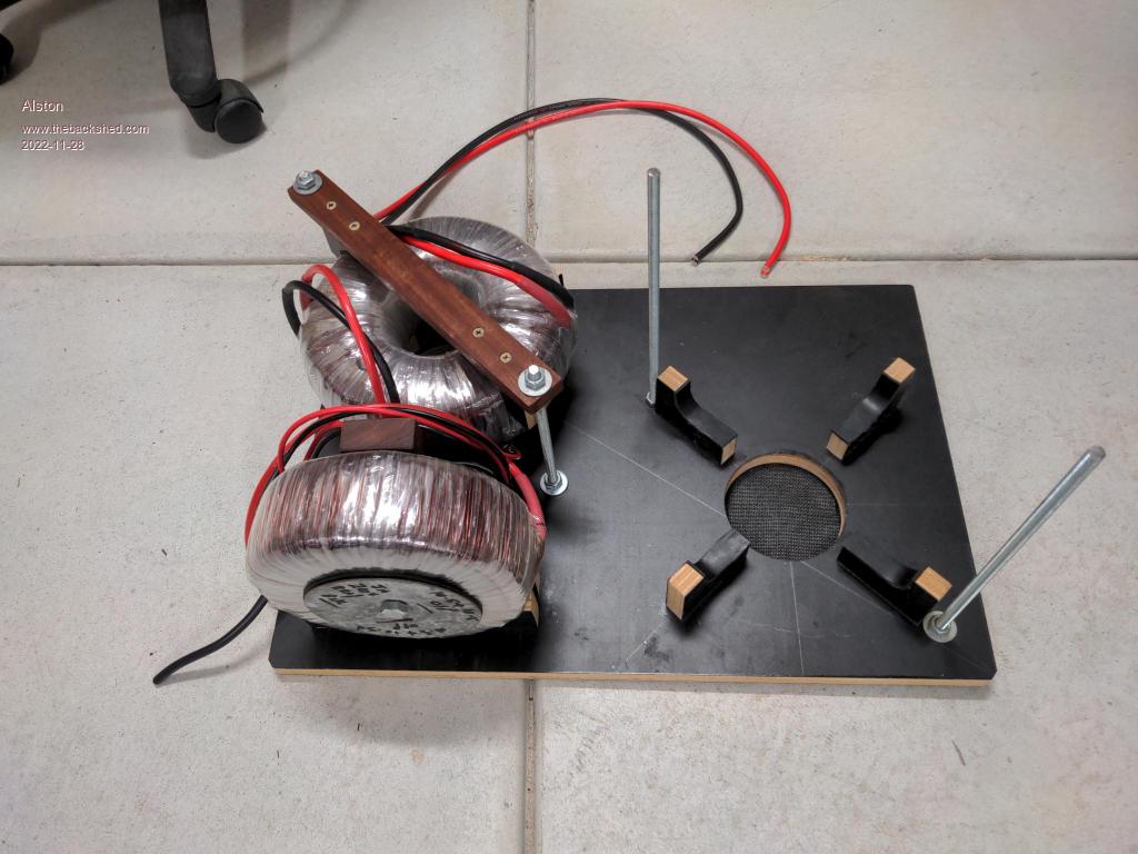 I have started on the enclosure and have gone down a similar path to Tinker/Murphy's Friend of using the lids from the Aerosharp enclosures to make the top and bottom panels. Here are the photos of the transformer mounting. There are 2 air intakes on the bottom of the unit that will bring air up through the centre of the 2 bigger transformers, as you might be able to see I have fitted fly screen on them. I have epoxied some rubber to the transformer mounts to cushion the wire from the clamps.
