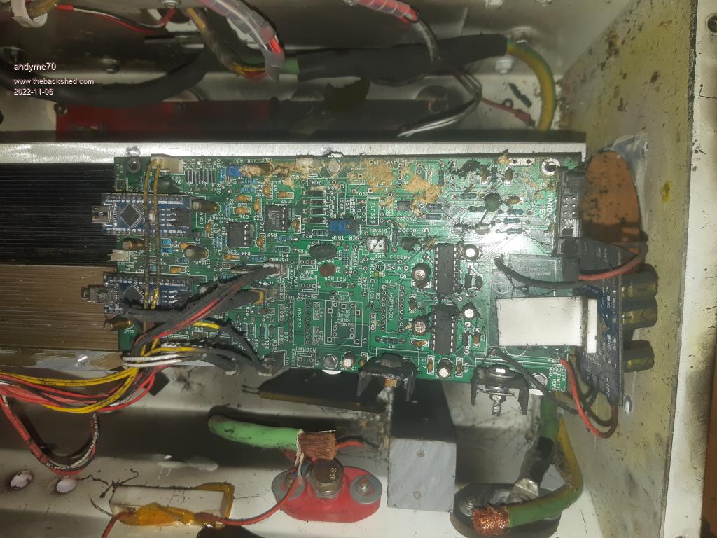 Here is the main board, not sure if it can be saved, I will try to clean it up and see which components need to change or if am I better off just starting a new one.