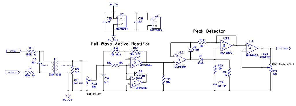 However I do want to know the AC voltage with some accuracy and have used an active precision full wave rectifier followed by a continuous peak detector