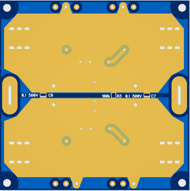 DC Power and AC Sense PCB's; both are on a 100 x 100 PCB, manually cut using a sharp knife to score both sides through the center of the small notches, then snap in half. They stack above each other and the main CPU board.