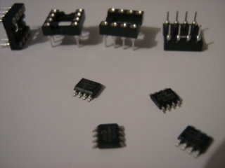 Hi vasi, I don't see any problems with just bending pins 1,4,5,8 a little away from the adjacent pins. The SMD devices you will probably not use for production. You should be able to solder pins 2,3,6,7 directly to the socket. You then can just solder 1.4.5.8 with short links. This will give a close to std DIL pkg. Gordon. become more energy aware |