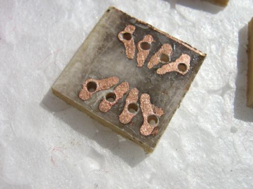 Adapter is ready, not soldered the chip yet... This is my intention: Ready to convert my SMD pics ... Ferric chloride was expired and lead to long time copper exposure. Also, the drill is 1 mm diameter . I applied a protective layer of rosin (which, I hope, will also help to solder - the risk is to float the trace if layer is too thick or, false soldering/connection ... ).