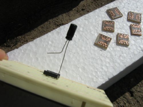 Hi Gordon, I don't have a very steady hand.. I found a way to keep the pcb steady - with elastic. I will try first this way. On the next trial, I must find/make something to fill that central hole from socket, to use as a support for SMD. Then, I can keep it steady with elastic and use pins from condenser as links ... If is working for me, the last two pics will be soldered like this one (as you said). This variant will save pcb, acid, toner, electricity and time ... If not, pcb adapter is the solution for me... hope will post tomorrow a photo ... I said I'm burning to test the ICSP programmer and to program my first "raw" (not PICAXE prepared) PIC? Hobbit name: Togo Toadfoot of Frogmorton Elvish name: Mablung Miriel Beyound Arduino Lang |