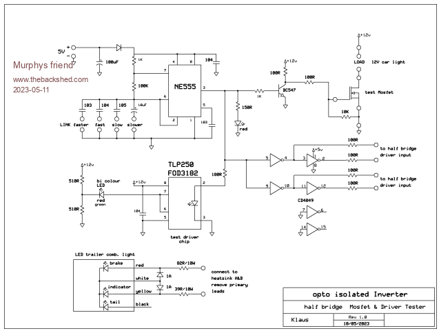 I have also included two more functions, one to check individual mosfets by letting them turn on/off a lamp load repetitively, the other to check the driver chips. Those two functions require a 12V supply as well as the 5V.