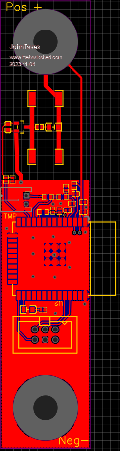 The cell module, has the form factor where you simply bolt it to the terminals on a prismatic cell that you buy from alibaba. The temp sensor does require you to wire a thermister and tape it to the cell. This board has 2 20ohm resistors in parallel that the software will turn on, potentially for hours, to give that cell a haircut if it is the first cell to reach the top V. The software can ensure that no one cell is always the one to reach the top V. These report their measurements every 2 seconds, and are asleep between measurements. After I implemented the sleep feature, I was unable to measure the amps. Prior to that it matched the expected ESP32 drain of a few tens of milliamps. Nobody will get excited about the ability of the esp32's A2Ds, but I find them totally acceptable for measuring cell voltage. They seem good to about +-.01V. I figure that I have no need to run these cells up to 3.65V which is supposedly the max. I stop at 3.5V so it makes no difference if the cell was really 3.52 or 3.48.
