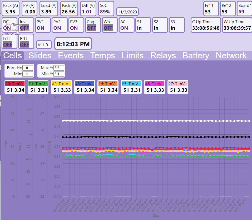 The software provides a web page where you set the # of cells and the various cut-offs and recovery values. The temperatures and gas and water levels are shown on the web page (the screen shots are from an earlier version, so no water or gas level).