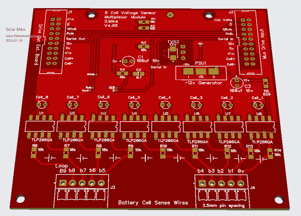 What I have come up with is a 100 x 92mm board with 8 x TLP206 switches to measure 8 battery cells, these ic's are not recommended for new designs by Toshiba as have been superseded, but are readily available on AliExpress quite cheaply in 50 + quantities and are quite small.