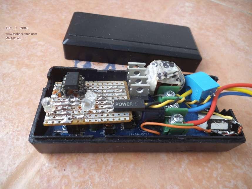 The control board is realized on a stripboard which holds on 2 powerboard connectors. Another little plug brings the current transformer signal.