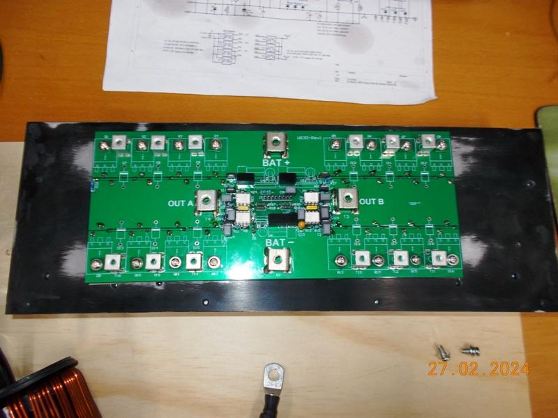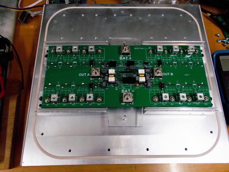 The screws for the high side FETs must be insulated from the positive plane with a small TO220 mounting bush. You can also purchase TO220 insulating washers (instead of the Heat mat that I use) and bushes in packs of 10 or 20 for a few dollars in AU.
