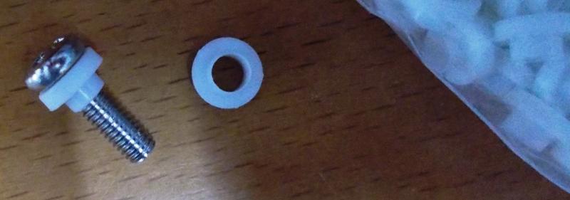 There is more spacing between the Gate resistors and the insulating mat that it appears in the photo, optical illusion. Here you can see the screw insulating bush and the square fiber pcb washer on top.
