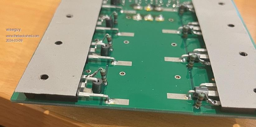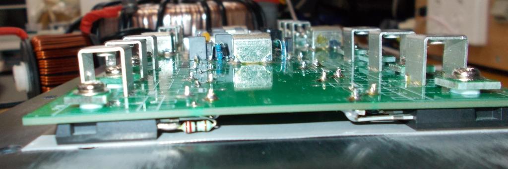 Also note the gate resistors standing on the edge which is fine with clearance of the bar mounts. If mounting to a heatsink direct they need t lay flat as in one of Mikes earlier pictures.