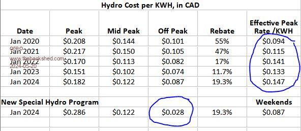 So the plan now, is to upgrade the battery, inverter and panels.  Hydro also has a special rate which I presume is tailored for EV owners, with the ultra low off peak rate of $.028/KWH on weekday evenings.  To offset this, the peak rate is higher with this plan.  I think I will switch to this plan, once I have everything up and running and use night Hydro to recharge my batteries when I don’t get enough solar.  This way, theoretically there may be a break even point at some point in the future.