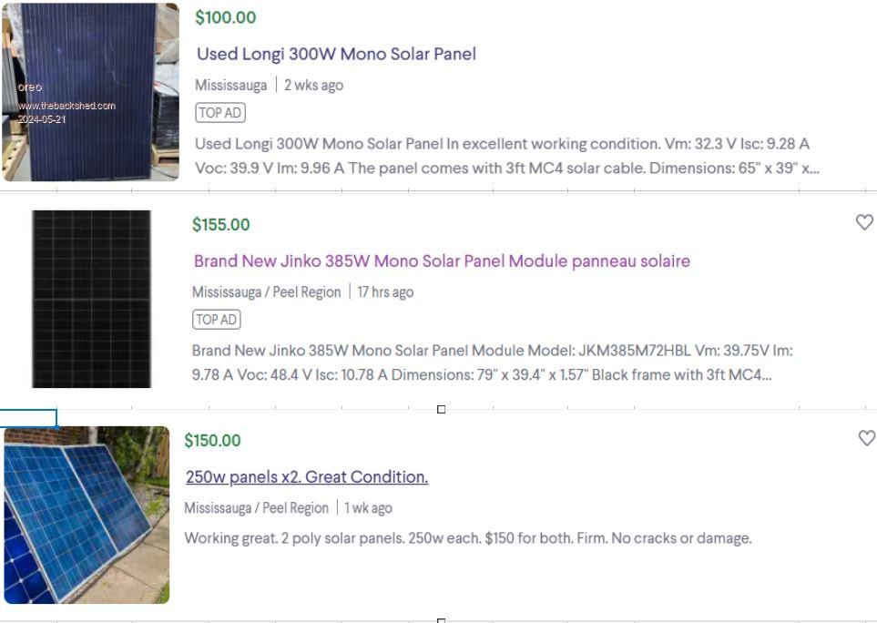 What's the second hand solar panel situation like in Canada?