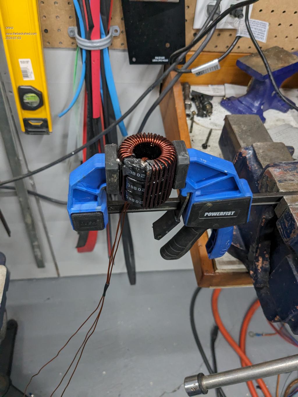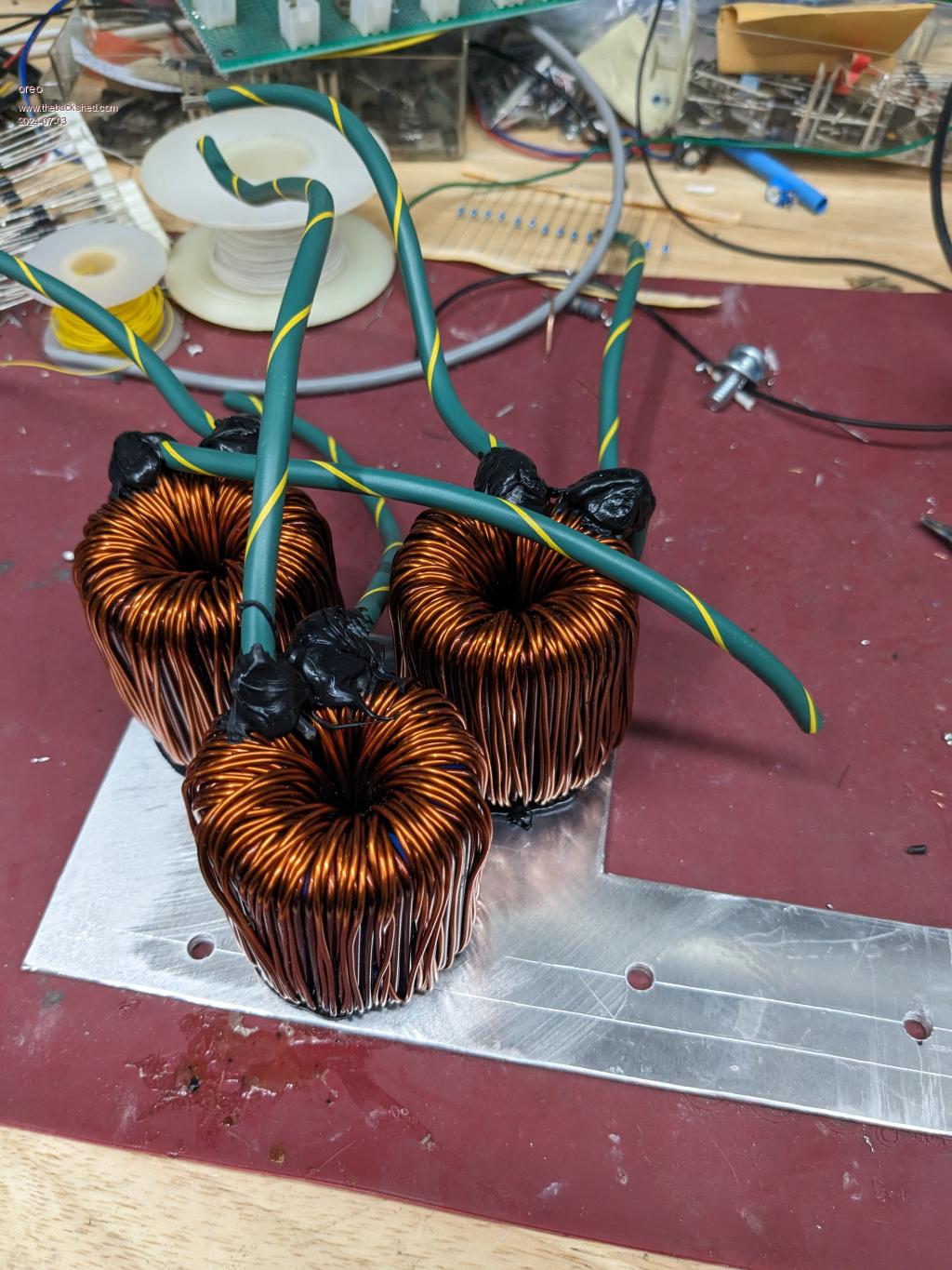 So I added additional windings to the inductors I already had, and decided to put 3 of these completed inductors in parallel (each one individually measured 340uH).