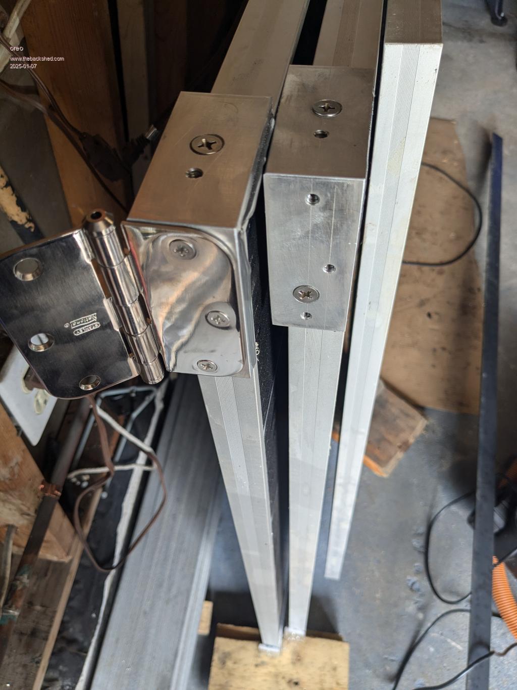 So to mount these panels, I mount 2 hinges on one end of each panel.  I strengthen the